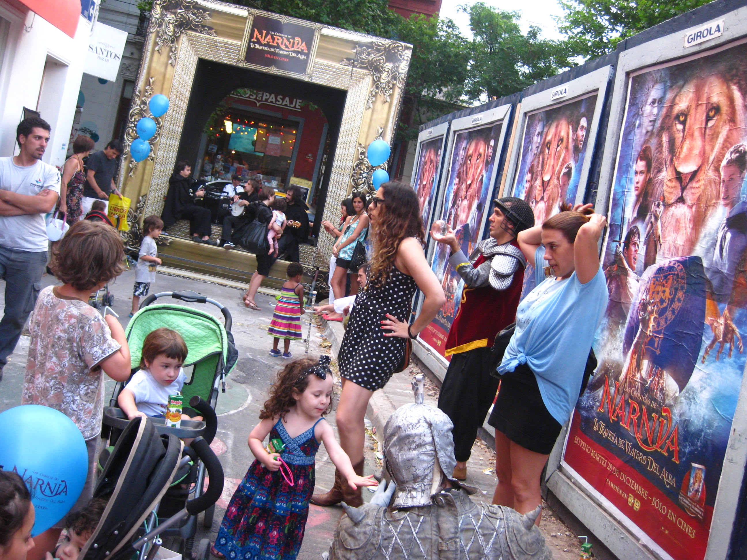 fui convocada para realizar la comunicación del estreno de la Película Las Crónicas de Narnia, el Viajero del Alba. y así surgió Pasaje Narnia, junto a Libros del Pasaje en la tarde de las librerías, un evento para los mas chicos, una tarde de cuentos, música medieval, dibujo, malabares, alfajores cachafaz, y mucho mas. acá algunas imagenes.