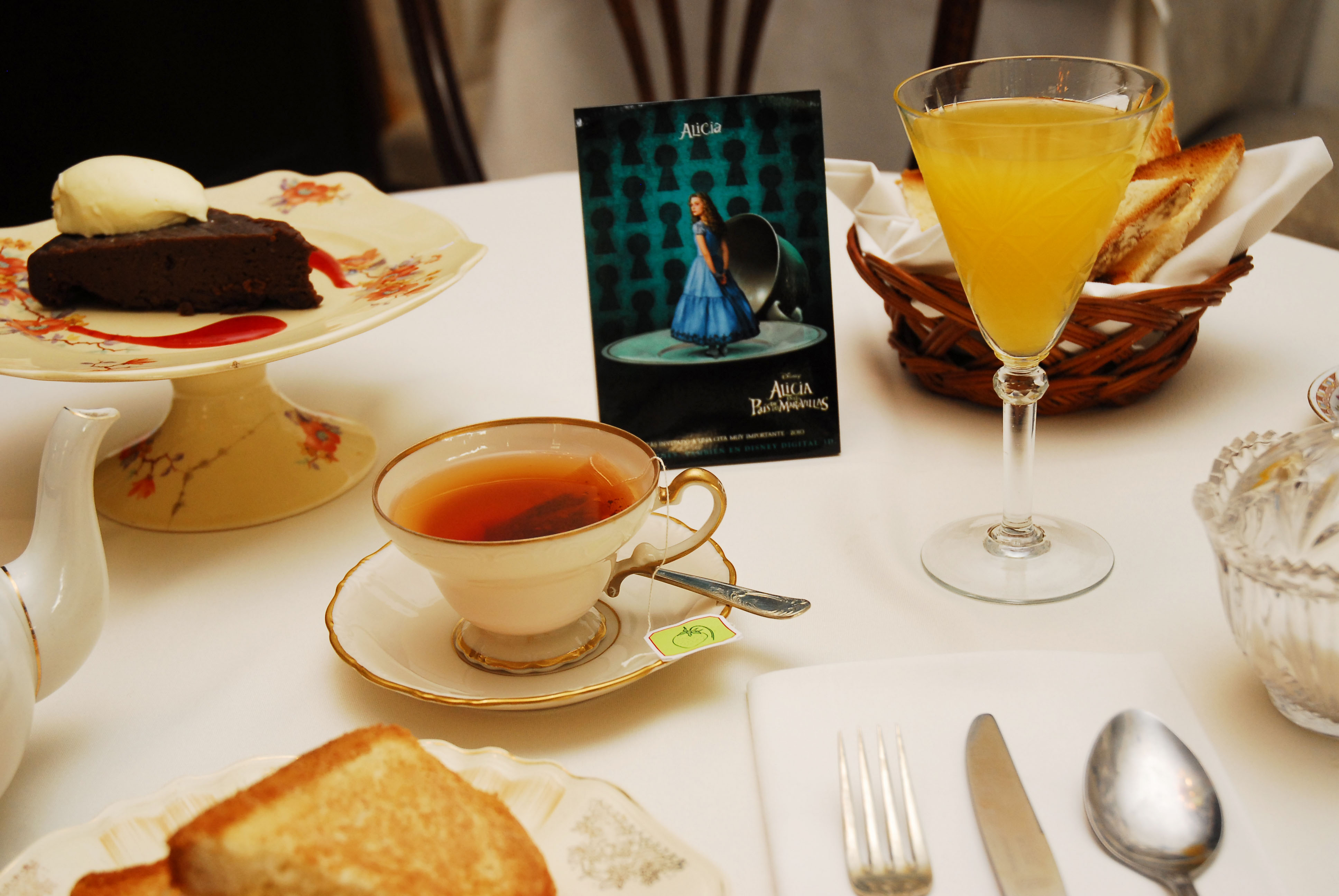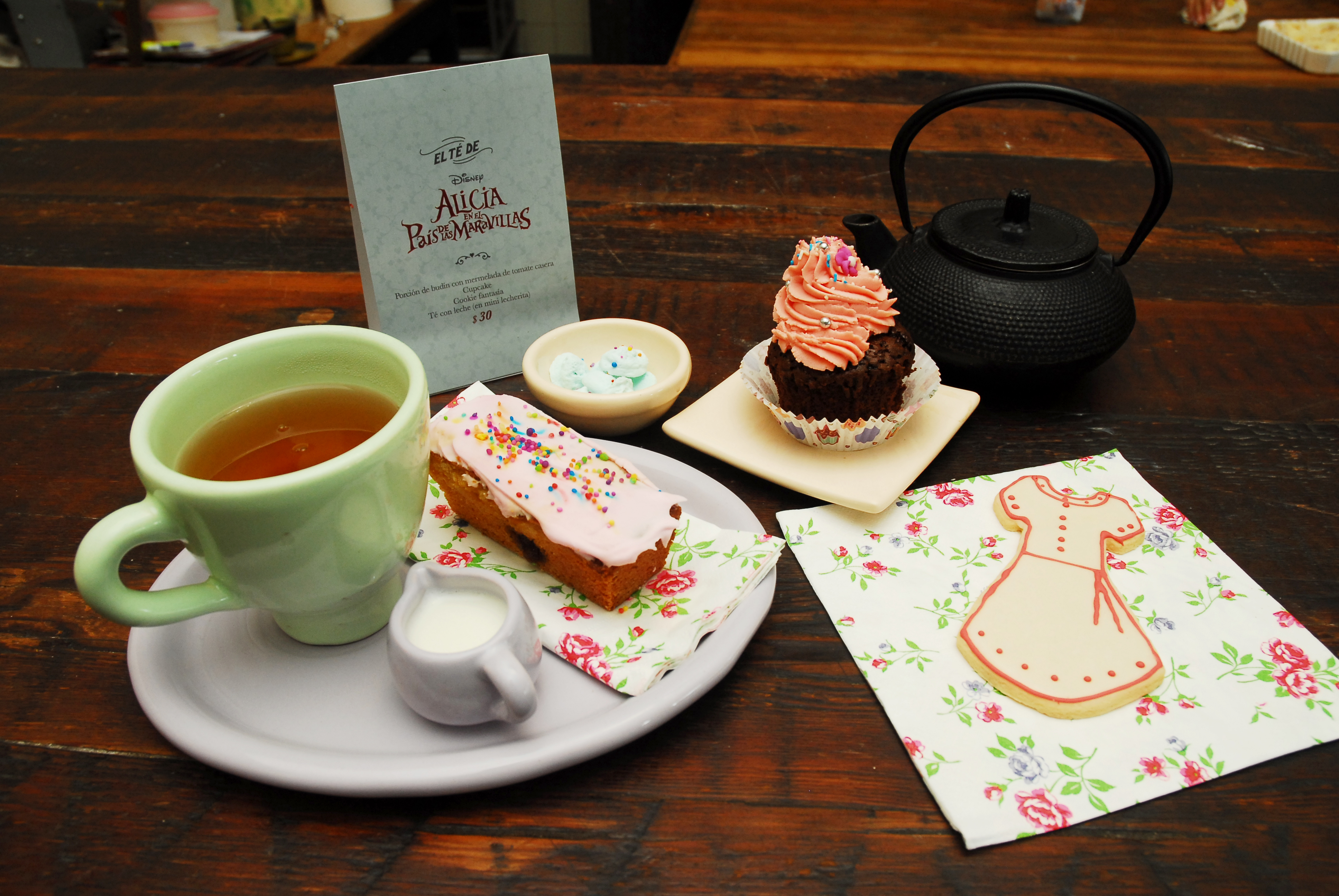 A partir de mediados de enero del 2010 y durante febrero y marzo, cada uno de estos lugares ofreció un menú especial y delicioso, inspirado en la película, La mesa del té era uno de los íconos de la nueva obra de Burton, y es por eso que La hora del té fue el primer homenaje a Alicia.