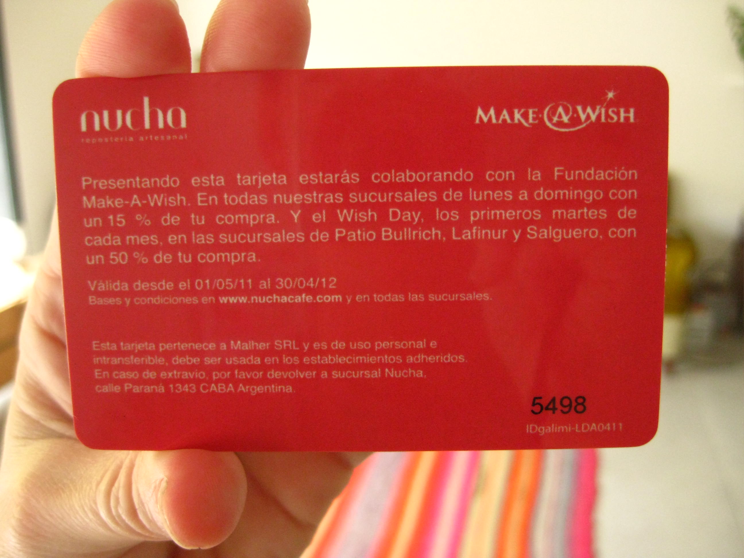 Las Tarjetas WISH CARD podrán adquirirse en los locales de NUCHA.