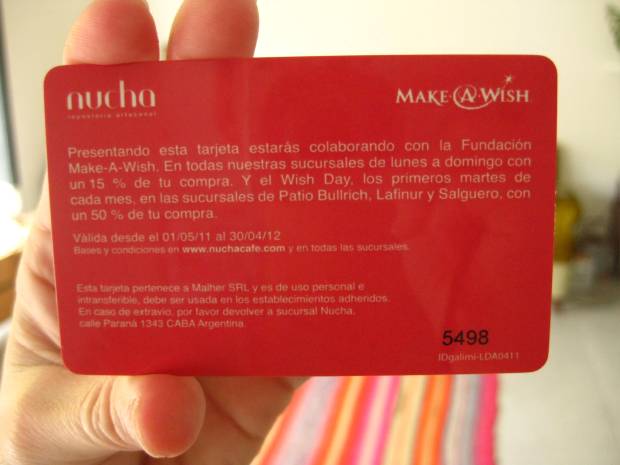 En todos los locales de Nucha, de lunes a domingo, quien presente la WISH CARD estará colaborando con MAKE-A-WISH, con un 15 % de su compra.