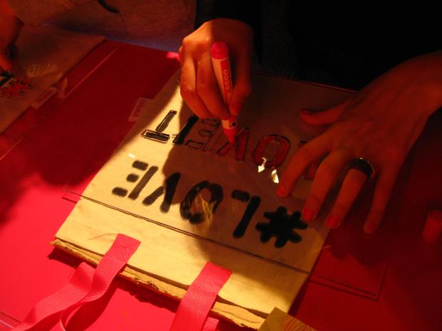 Gracias al apoyo de TOTEBAG (www.ilovetotebag.com) que se sumo a la movida con sus bolsas reusables de diseño compacto y a Edding (www.edding.com.ar) que aporto los marcadores para pintar sobre tela, se cerró esta acción colaborativa, creativa y con un aporte de conciencia ecológica.