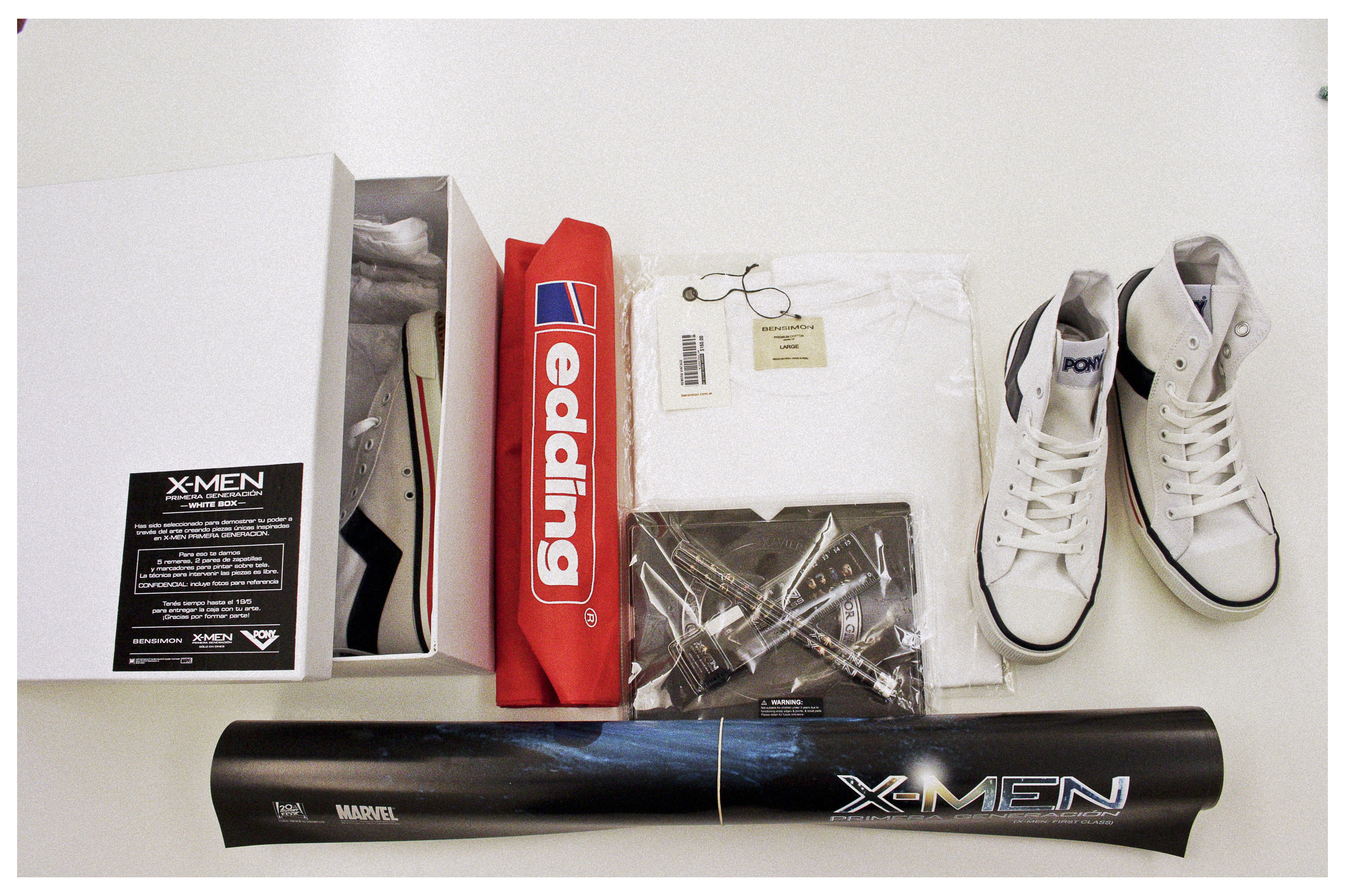 Se seleccionaron 10 artistas argentinos reconocidos a los que se les fue entregada una caja blanca que contenía remeras Bensimon blancas, zapatillas Pony blancas, marcadores Edding para pintar sobre tela, y material de inspiración. La consigna: en 15 días debían entregar la caja con todas las piezas intervenidas inspiradas en X-MEN.