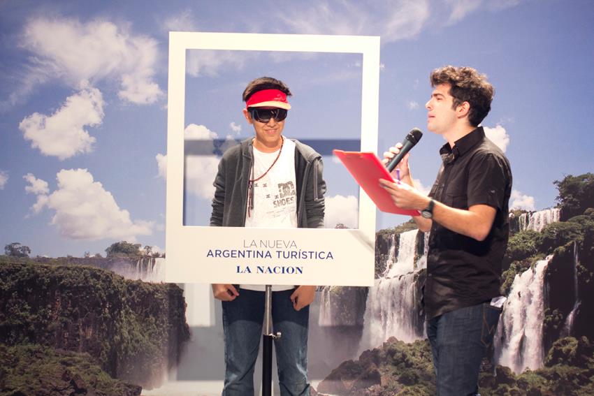 La propuesta incluyó una versión de la guía con sus paisajes en formato de gigantografías, donde los participantes podían hacerse fotos con un simulador de marco de foto instantánea. También contestaban preguntas sobre turismo y participaban por premios. Anfitrión: Nazarenos Casero.